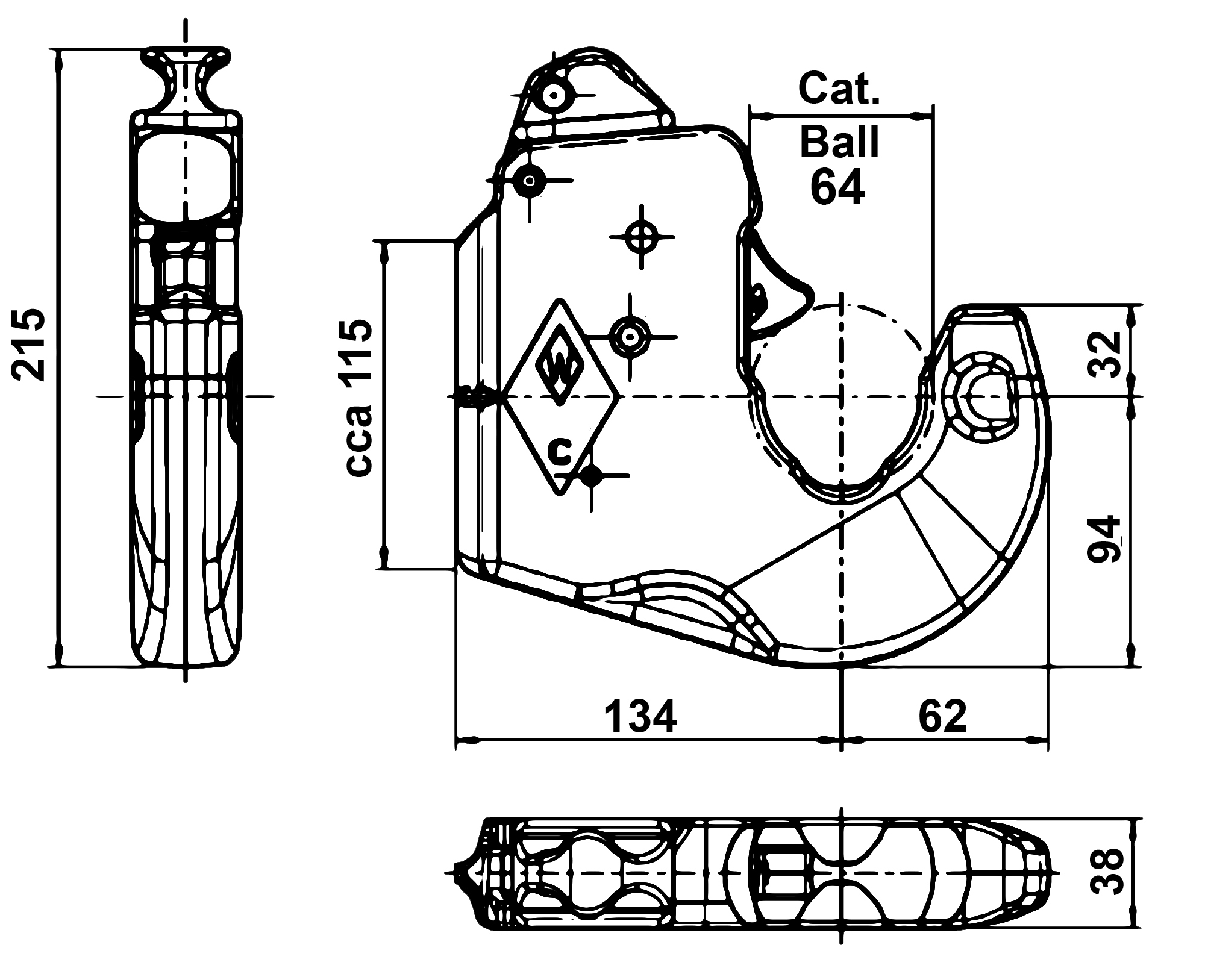 CROCHET AUTOMATIQUE POUR BARRE DE POUSSE / 3EME POINT CAT.3 WALTERSCHEID