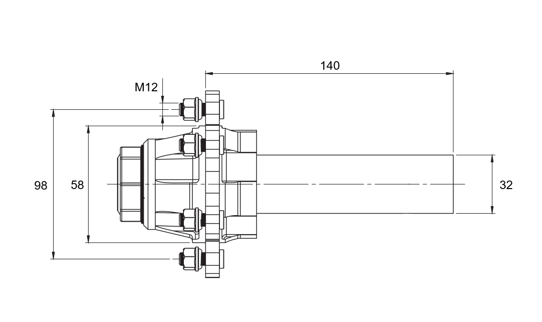 Le moyeu d'essieu non freiné est destiné à une utilisation sur différents types de remorques sans système de freinage. La longueur du moyeu est de 140 mm, avec une capacité de charge allant jusqu'à 500 kg.