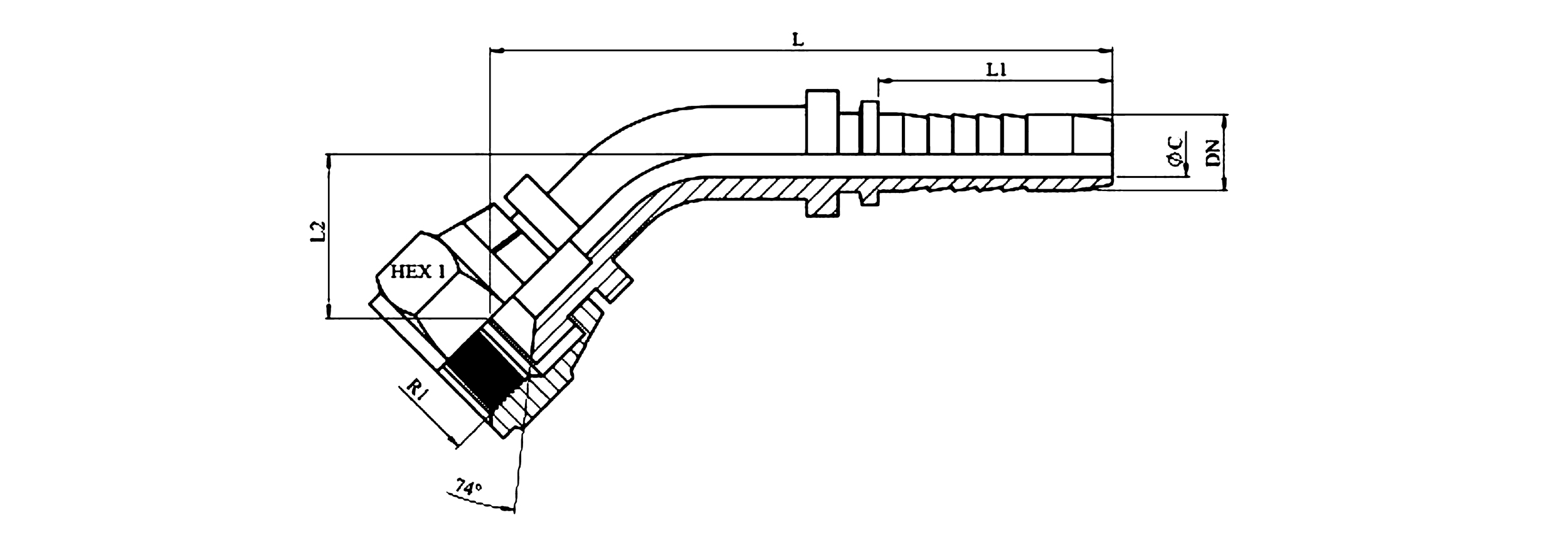 RACCORD HYDRAULIQUE BSP FEMELLE COUDE 45° DN10-1/2