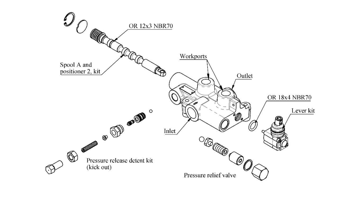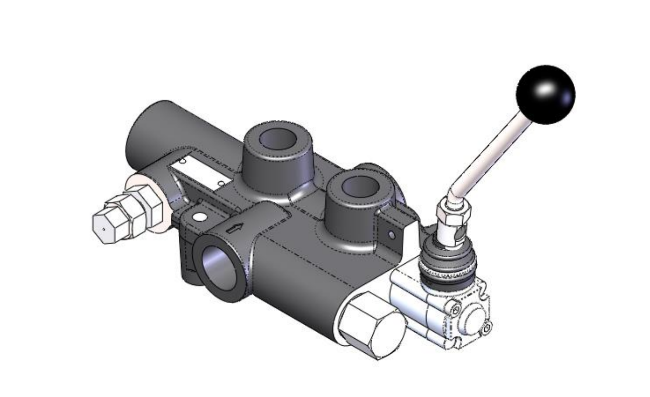 La valve dispose d'une fonction de décharge automatique de pression. Une fois la pression réglée atteinte (réglage d'usine à 150 bar), elle ramène automatiquement le levier en position neutre.