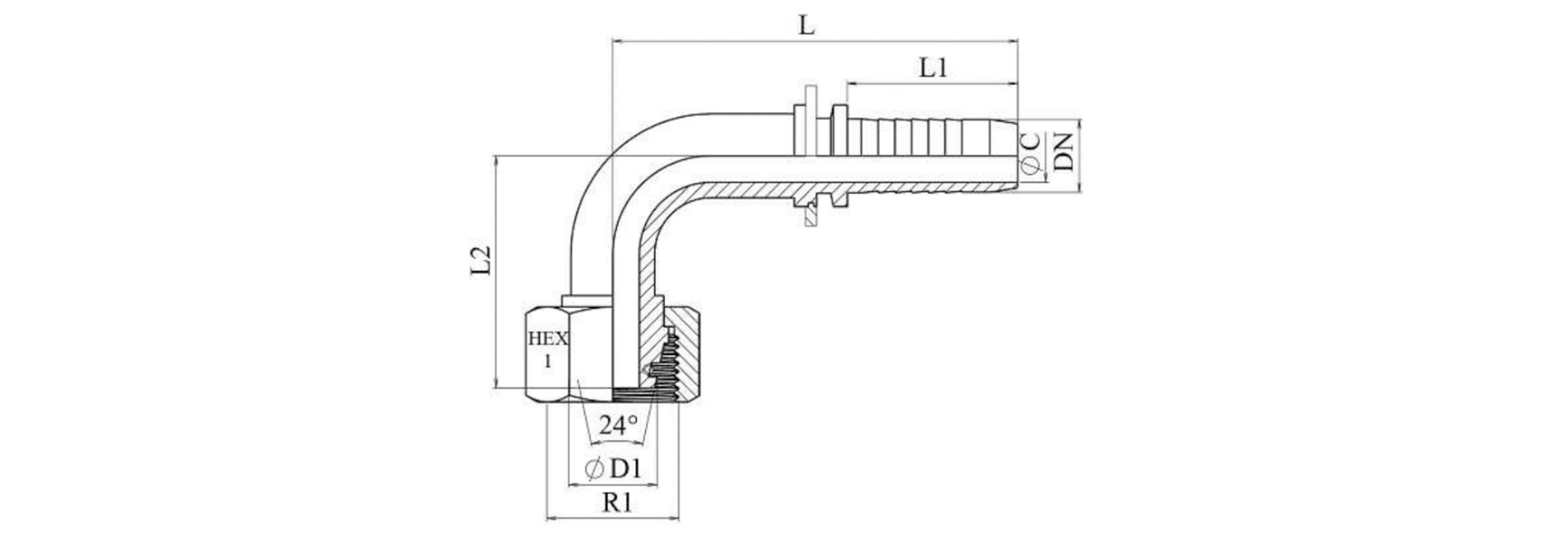 HIDRAVLIČNI PRIKLJUČEK DKOS 14 S ŽENSKI KOLENO 90 DN10-M22x1,5