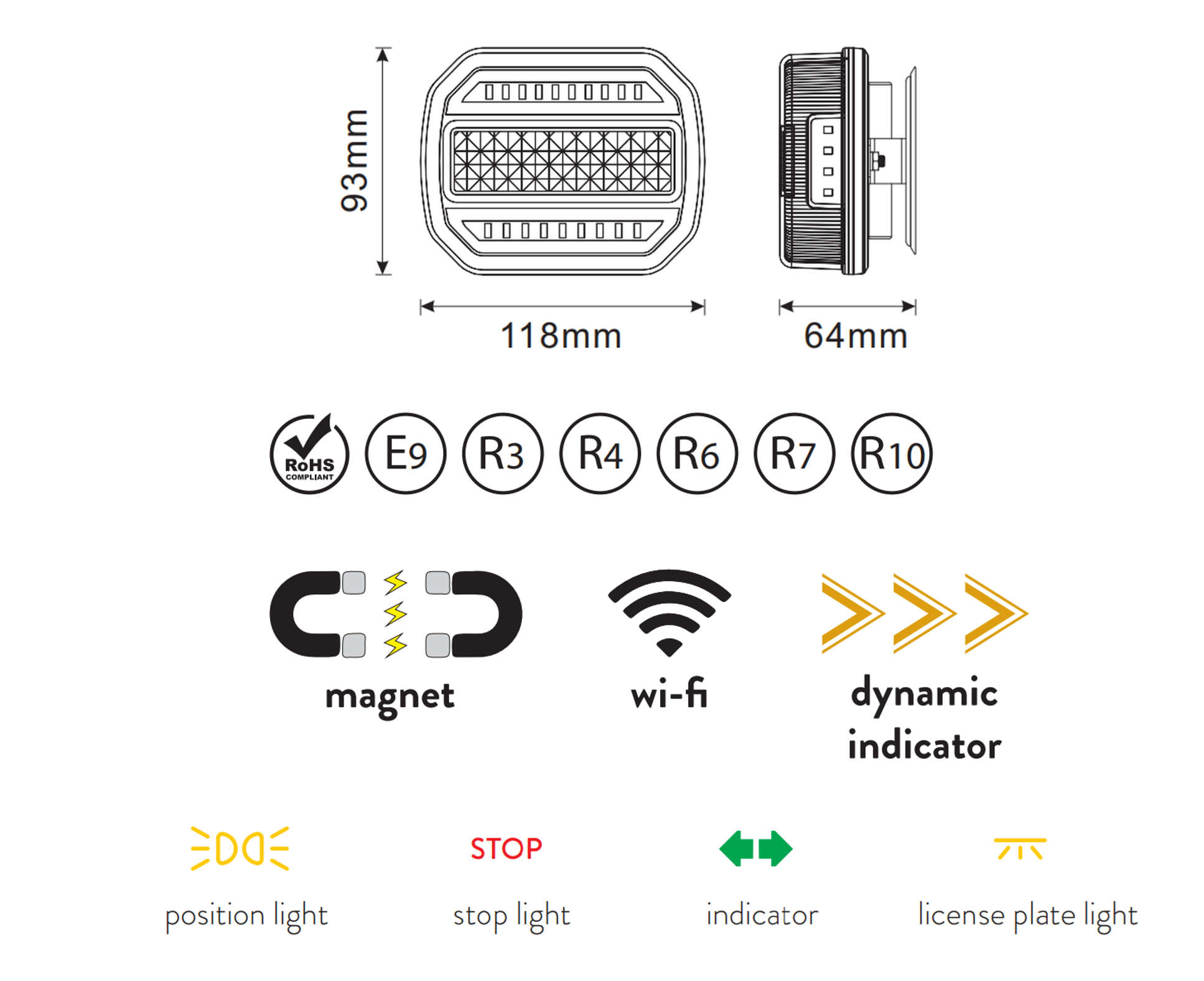 Kit pratique de feux LED magnétiques sans fil pour la signalisation rapide et sûre des remorques. Le kit est une solution idéale pour une signalisation lumineuse simple et fiable, sans câbles ni câblage compliqué. Placez simplement les feux sur une surface métallique et l’aimant les maintiendra solidement en place.
