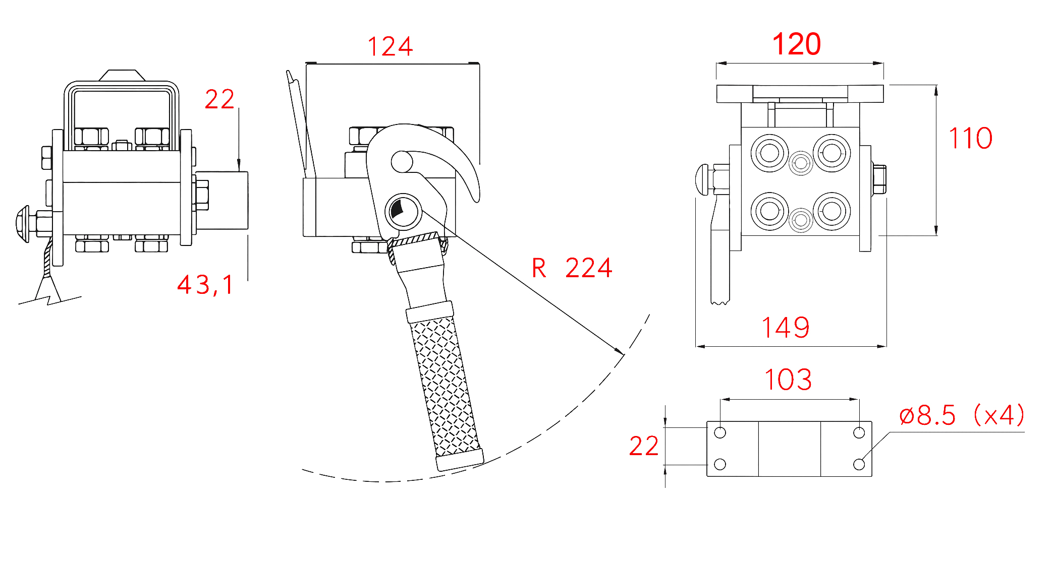 MULTI-FASTER SPOJKA 3wie BSP 1/4 MOBILNI DEL (ENOJNA ROČICA)