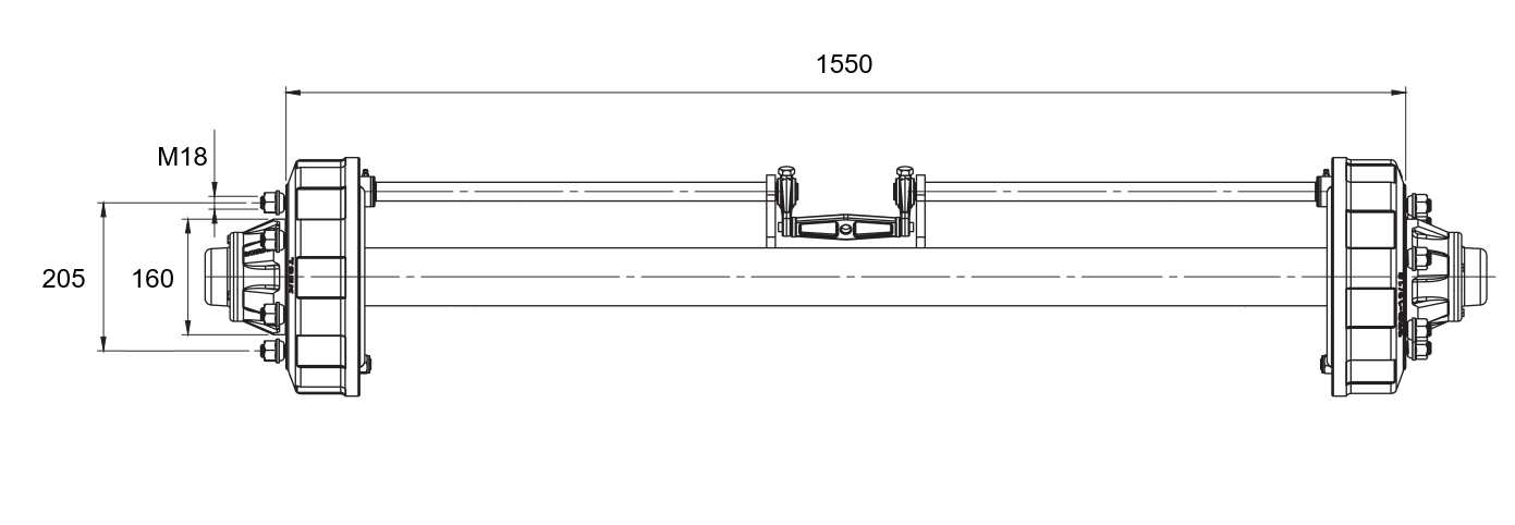 AKSEL FOR TILHENGER MED BREMSER (6 SKRUE) - 3800 kg - 1550 mm