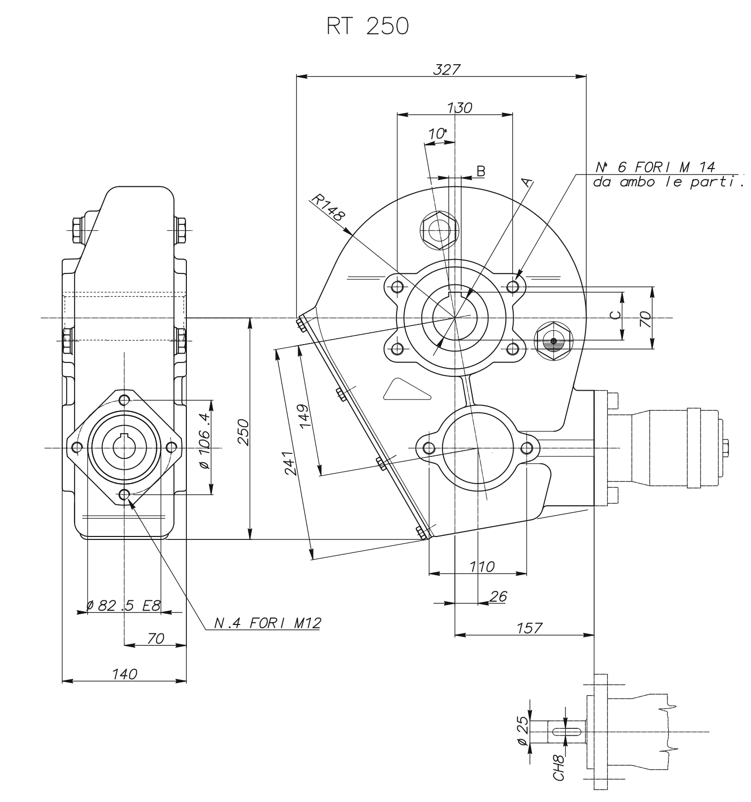 RIDUTTORE - MOLTIPLICATORE RT250 PER MOTORE IDRAULICO MP/MR/MS relazioni 21,1:1