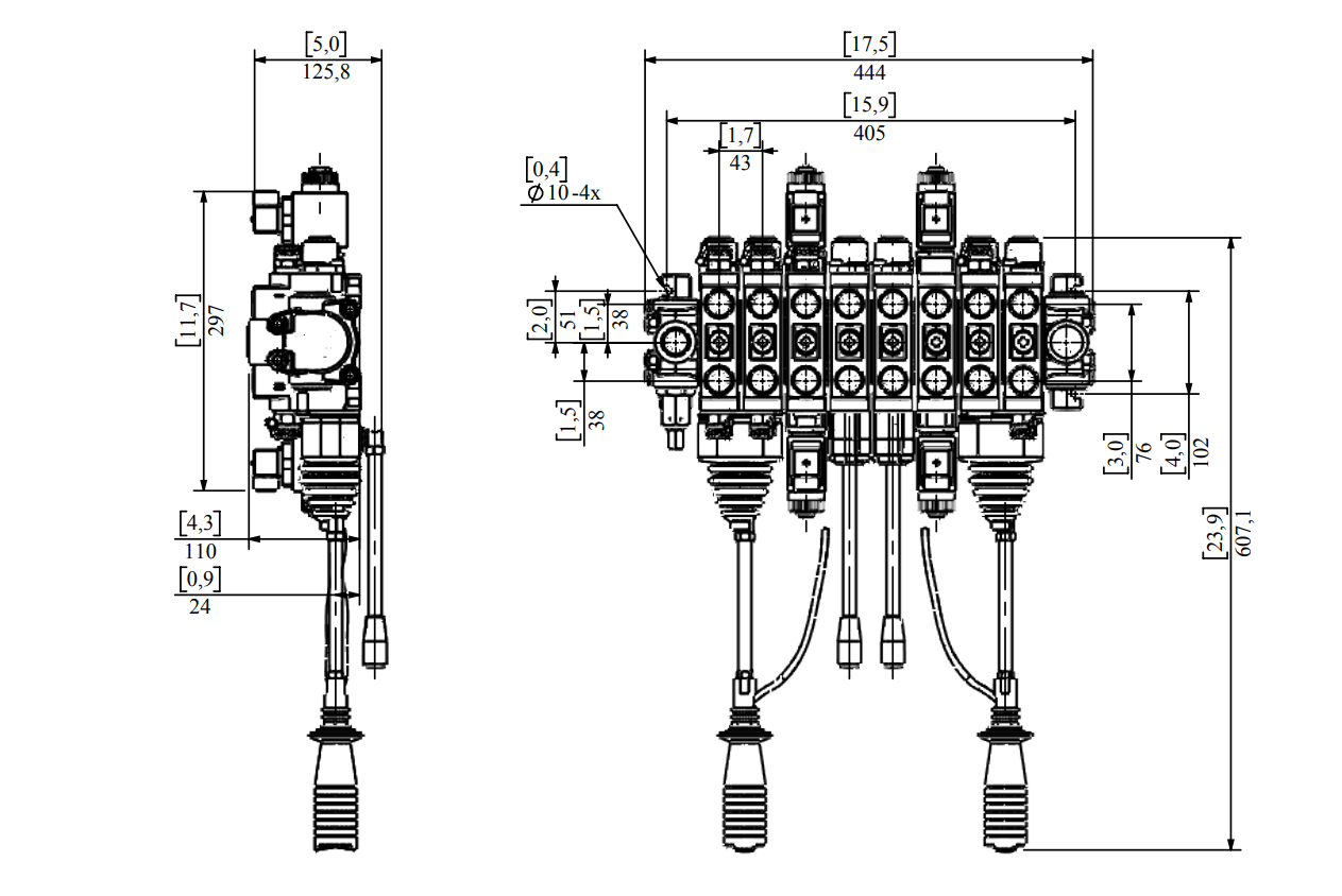HYDRAULIC VALVE HIAB 8XPC70 + 2X JOYSTICK - ELECTRIC CONTROL 12V