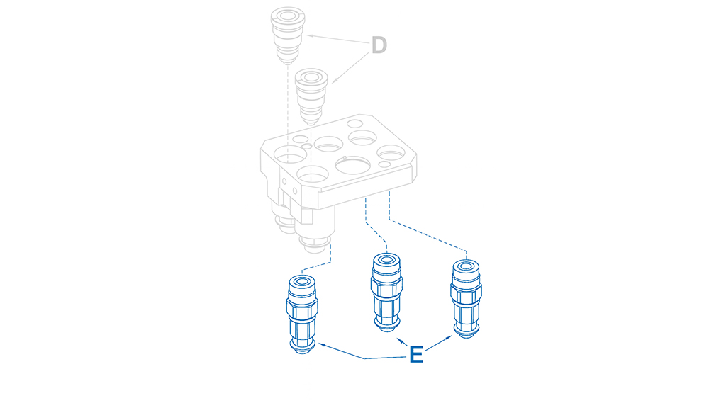Originálne, vymeniteľné armatúry pre Multi-Faster. Sú určené na rýchle a bezpečné pripojenie hydraulických vedení k pracovným zariadeniam (poľnohospodárstvo, stavebníctvo, priemysel). K dispozícii sú samica aj samec v rôznych veľkostiach a závitoch, čo umožňuje výmenu opotrebovaného prvku samostatne bez výmeny celej dosky.