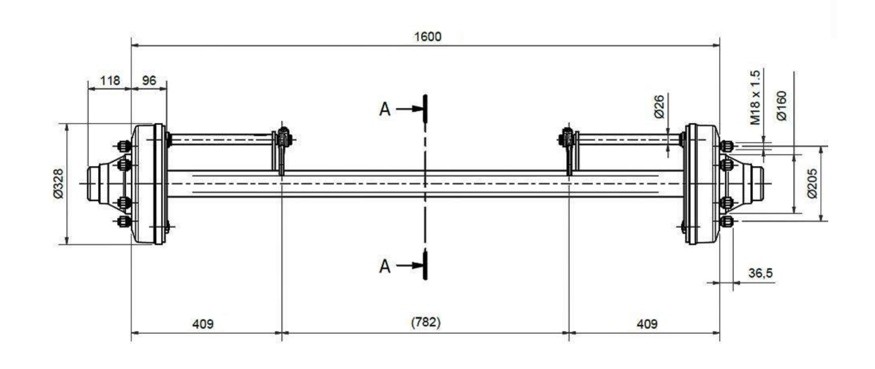FÉKES UTÁNFUTÓ TENGELY (6 CSAVAR) - 7200 kg - 1600 mm